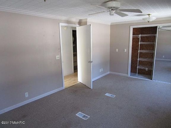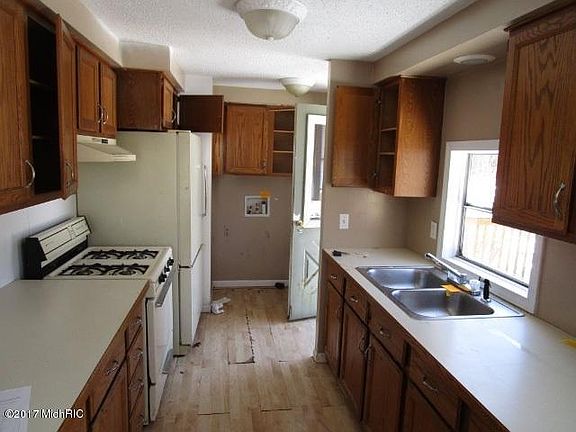 2 Bedroom, 1 Bath Ranch home located in Twin Lake, MI. This home has central A/C and forced air heat. Interior needs fresh paint, carpeting replaced and kitchen and bath updating. There is a deck over looking back yard and a large detached garage for parking or storage. Other repairs and updates may be necessary before move in ready.