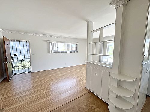 Renovated, top floor 2BR, 1 bth, in a boutique complex in the heart of Beverlywood!Hardwood floors throughout, oversized living room overlooking a treelined street. Separate dining area. Charming kitchen with vintage accent tiles, lots of storage! 2 good sized bedrooms with plenty of closet space and treetop views, extra built ins in the hallways. Big bathroom with pink accent tiles, separate tub and shower stall. Laundry on site, one parking space in the surface lot included. NO PETS.