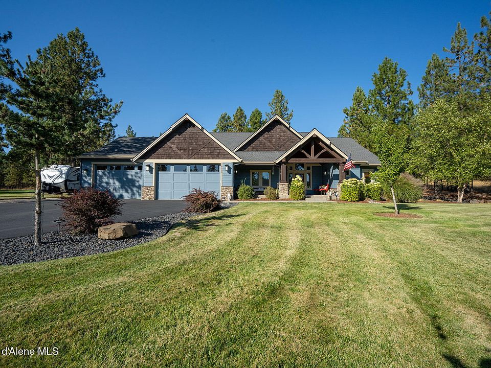 Located minutes from downtown Coeur d' Alene, this exclusive home in the coveted Forest Lake community sits on over an acre of beautifully landscaped, private grounds. Set well back from the road bordered by HOA protected land on the back and side, it offers peace, privacy and high-end living. Inside you'll find rich knotty alder cabinetry, soapstone countertops, vaulted ceilings, and a dual sided fireplace connecting the great room to the covered patio. The grounds are a botanical haven, featuring lush, mature landscaping, a deer-fenced garden, a charming greenhouse, a collection of perennials that will return year after year-including 50+ blooming peonies that transform the yard into a private garden show each spring. The custom twinkle-lit, paver patio is perfect for summer evenings and quiet gatherings under the stars. Incredible versatility with 24'x30' shop featuring a loft, plus a 12'x30' carport. The 2141 SqFt garage offers ample space for storage, toys and workshop needs. One of the two car bays even boasts a 10' tall door. There is also a dedicated tool room. This is a dream set up for any hobbyist, hunter, or DIY enthusiast. Enjoy the very best of North Idaho living-watch wildlife, tend gardens, tinker in the shop, and keep all your toys in one place, surrounded by the peace and beauty of nature, all just minutes from town.