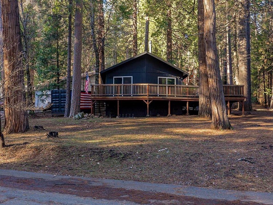 Darling cabin in the woods that invites to indoor/outdoor living! Great starter or vacation home on a nearly level low maintenance lot. The spacious open floor plan is amplified by the vaulted ceiling and lots of windows flooding the space with natural light. Ready to entertain? Enjoy the open, recently updated kitchen with its new appliances and butcher block counter tops leading directly to the dining/living area and out to the brand new expansive deck. The home also features new vinyl flooring throughout, fresh paint inside and out and a remodeled bathroom. Located only minutes to fully recreational Sly Park lake and National Forest.