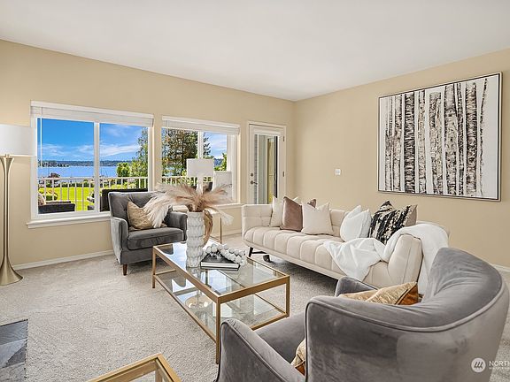 Gorgeous one level condominium enjoys fabulous views of the Marina & Lake Washington. This meticulously maintained end unit is the one you've been waiting for, spanning 1,460 sq.ft, with 3 bedrooms, 2 baths and the added perks of 2 parking spaces, a storage unit and elevator access. Inviting 9' ceilings and a cozy gas fireplace create a warm and welcoming retreat. The kitchen, complete with breakfast bar and high-end stainless appliances, convenient to the living room and dining area. Take in the fabulous views of Lake Washington and the Marina from your exclusive gated Marina Cove Condominium, conveniently positioned adjacent to the Burke Gilman Trail, Log Boom Park with Pier and beach. Amazing location, easy access to Seattle or Eastside.