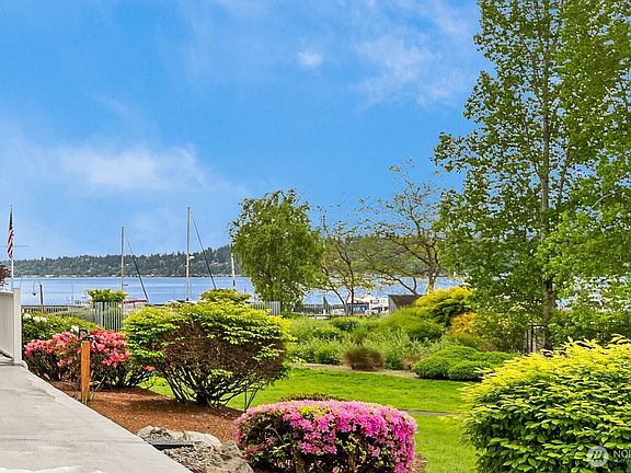 Gorgeous ground level condominium enjoys wonderful views of the Marina & Lake Washington. This meticulously maintained end unit is the one you've been waiting for, spanning 1,340 sq.ft, with 3 bedrooms, 2 baths and the added perks of 2 parking spaces, a storage unit and elevator access from garage. Inviting 9' ceilings and a cozy gas fireplace create a warm and welcoming retreat. The kitchen, complete with breakfast bar and high-end stainless appliances, convenient to the living room and dining area. Take in the fabulous views of Lake Washington and the Marina from your exclusive gated Marina Cove Condominium, conveniently positioned adjacent to the Burke Gilman Trail, Log Boom Park with Pier and beach. Amazing location!