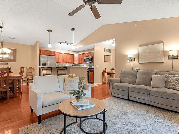 Move-in ready condo with open layout, updated kitchen, and a prime location. Spacious 2-bedroom, 2-bath unit with nearly 1,300 sq. ft. of single-level living. The open entryway leads into a bright floor plan highlighted by vaulted ceilings and abundant natural light. Features include a fully updated kitchen, in-unit laundry, and ample closet space. The primary suite offers a walk-in closet and private en suite bath with new shower surround, while the separate second bedroom (or office) is served by a nearby large hall bath. Additional highlights include a private balcony with outside storage closet and one reserved parking spot, plus plenty of guest parking. Community amenities feature a fitness center, clubhouse, and pool. The condo fee covers water, sewer, exterior maintenance, snow removal, trash, lawn care, and amenity maintenance. Conveniently located with easy access to I-270, I-71, Easton, and Uptown Westerville. New AC installed in 2024.