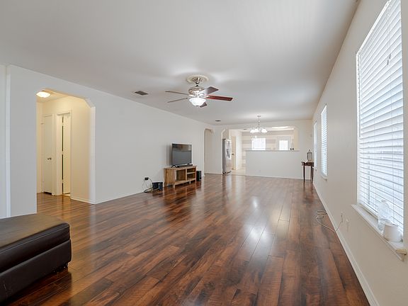 Beautiful one-story house with freshly painted walls, in house laundry, beautiful hardwood floor, no carpet so no carpet issues, two door fridge, microwave, very good community, a couple of miles from Costco, UTSA, and USAA,New water softener . Pets allowed with one nonrefundable fee of 100$ and a monthly fee per pet . Last month's rent is due at signing.No smoking inside. Lease extension has to be informed 45 days prior to lease ends . Tenants take care of lawn . .