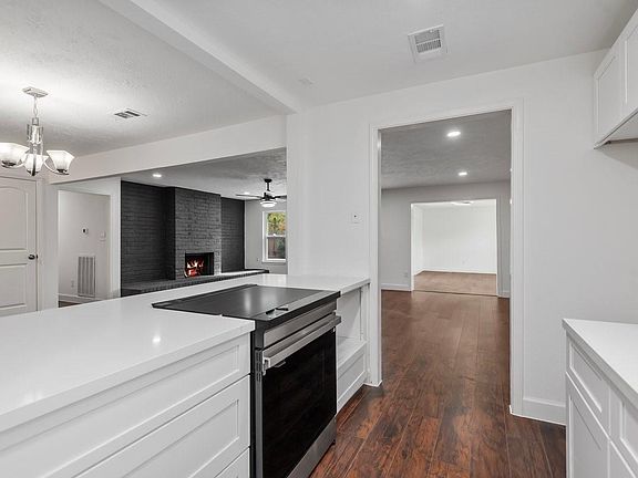 Enjoy the bright, open-concept layout with updated flooring, designer lighting, a stunning painted-brick fireplace, and a refreshed kitchen. Plus, a mudroom for extra function.
