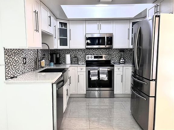 Fully Remodeled 3 Bed, 3 Bath Townhouse. This stunning home features porcelain flooring throughout and a modern design. The fist floor includes a bedroom and full bath, with sliding doors in both the bedroom and family room leading to a screened-in patio. The beautifully remodeled kitchen boast stainless steel appliances. Upstairs, two spacious bedrooms each have access to private terrace. The two bathrooms upstairs are completely remodeled with element finishes. A convenient in-unit washer and dryer in the second floor add to the home's appeal. Don't miss this gem!