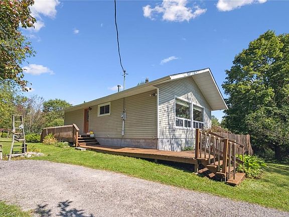 Looking for an idyllic country home at an affordable price? This unique bungalow sits tucked back a few hundred feet from the road on a sprawling, treed 10-acre parcel, offering the perfect balance of privacy and natural beauty. The home itself provides over 2,000 sq. ft. on the main level, featuring 2 bedrooms, 2 bathrooms, and multiple inviting living spaces. Host gatherings in the vaulted Family Room with gas fireplace, or enjoy a quiet evening in the cozy Living Room with wood-burning stove, both with walkouts to the private yard. The lower level also offers a walkout, creating excellent potential for future living space or in-law accommodations. Step outside and imagine the possibilities, grow your own vegetables and flowers, start a beehive, or simply wander the trails through the forest, amicably maintained by you and your neighbours, perfect for hiking, bird watching, or unwinding in the peaceful outdoors. All this, while being just 15–20 minutes to town in nearly every direction, Fergus, Orangeville, Erin, or Acton. Escape the city, bring your redecorating ideas, and make this your dream countryside home. Book your private showing today!