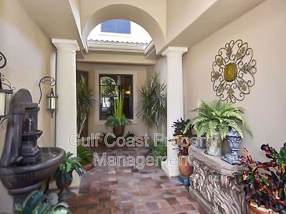 Annual unfurnished townhome that offers four bedrooms, three and a half baths. From the very moment you approach the covered entryway into this 2,412-square-foot luxurious, Spanish Mediterranean townhome, you will be captivated by the exquisite attention to detail that has been built into every beautiful room. As you enter, you will be swept away by openness of the 20-foot ceilings in the grand area with a half bath and ground-floor utility room. You will love the attention to detail including the solid wood shutters and wood blinds. Accenting the floors are designer porcelain tile in a diagonal. The kitchen offers you a beautiful eat-in granite counter-top with 36-inch maple cabinets and over valance lighting, two roll out shelves with trash pullout and GE profile stainless steel appliances. From your kitchen, dining area and extended covered screen lanai, you will be enthralled by your lake view displaying a large fountain. The large primary bedroom and bath featuring dual vanities and walk-in closets are conveniently located on the ground floor. At the top of the solid wood stairway, you have three additional bedrooms, two full baths with an office nook with plenty of storage. The maintenance-free, privately gated Bougainvillea Place Community features a resort-style clubhouse with full kitchen, lounge area, pool, fitness center, private cabanas and barbecue area. Location is minutes from I-75, shopping, entertainment and dining. In addition to the rent, a resident benefits fee of $35.00 will be applied. Tenant occupied 24-hour notice required prior to showing.