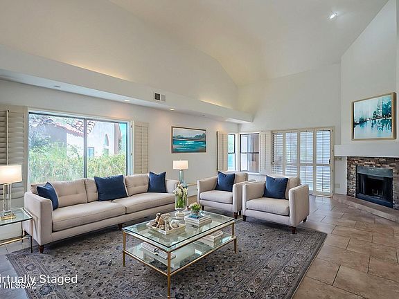 Step into the charm & elegance of Ventana Golf Villas with this beautifully designed & freshly interior painted home, offering a perfect blend of comfort & style. The spacious primary suite is a true retreat, featuring an ensuite bath w/ a luxurious walk-in glass shower. A well-appointed guest bedroom provides flexibility for visitors or a home office. Throughout the home, sleek 20'' tile flooring enhances the open layout, while rich alder cabinets & durable Silestone countertops bring warmth & sophistication to the kitchen. The inviting living room, complete with a cozy fireplace, sets the stage for relaxation & entertaining. Beyond your doorstep, the community offers an exceptional lifestyle w/ 24-hour manned gate, a sparkling pool & spa - this townhome is ready for YOU to enjoy!