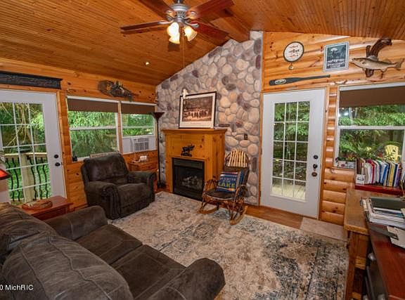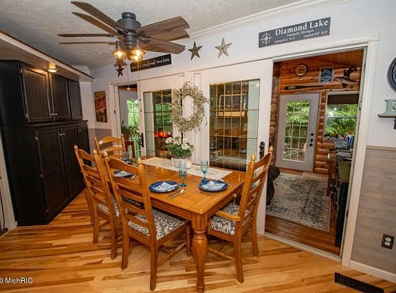 SW Michigan Diamond Lake access. Spacious 10 room, 3 bedroom, 3 full bath, 3000 SF lodge style home is spread over 2 levels and easily accommodates large groups with its double living areas. Main floor master and laundry. Lower level boasts an additional (2nd) spacious living room w/fireplace plus dorm size bedroom that can sleep a crowd. Lower level also has full size kitchen and second laundry area. Great setup for single family w/guest quarters or 2-3 generation family. Can be turn key with a complete furniture and boat package. Across the street from the lake in beautiful Howell Point, this well maintained home has been updated and is ready to enjoy its new lake loving owner. Fenced backyard for the pets, back deck with firepit is a great place to enjoy your morning coffee or
