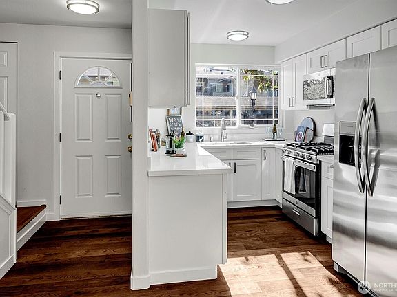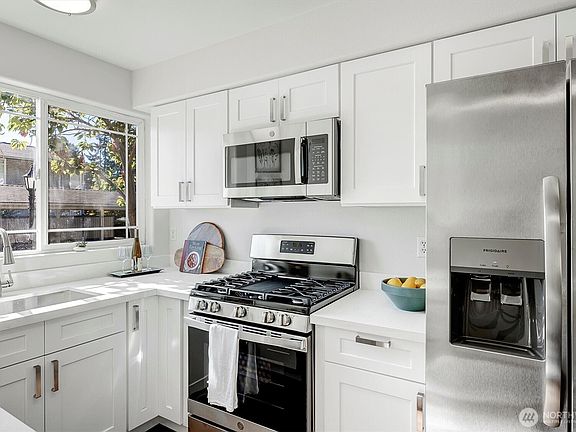 Discover this beautifully remodeled 2 bedroom, 1.5 bath end-unit townhouse style condo, perfectly blending style, comfort & affordability. This private unit features a spacious primary w/ensuite bath, plus a convenient half bath on the main level. Enjoy new laminate hardwood floors, new carpeting & new SS appliances. The newly remodeled kitchen boasts gas cooking & the cozy gas fireplace adds warmth & charm to the open concept living space. You'll appreciate the added perks of assigned covered parking, a private storage unit & access to the cabana with on-site exercise area. Located w/ easy access to Hwy 99, I-5, the new Lynnwood Transit Center & Light Rail makes commuting a breeze. Minutes to Trader Joe's, Alderwood Mall, eateries & more.