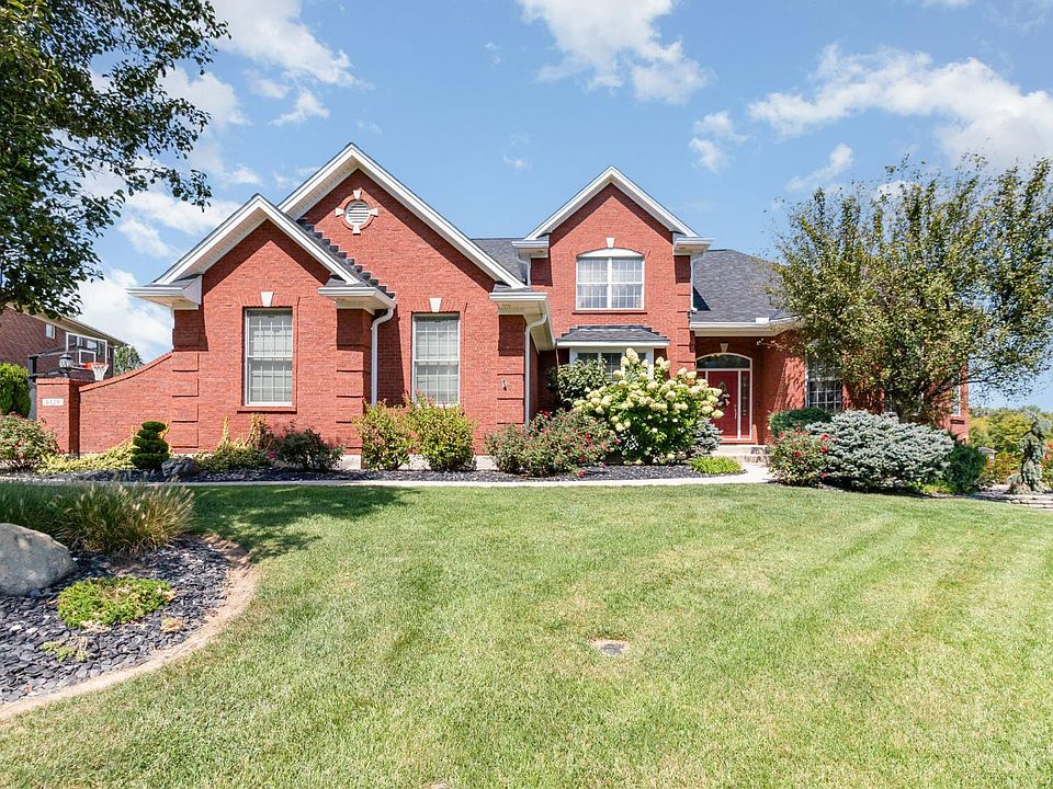 This Beautiful 4+ bedroom two story has it all. First floor primary bedroom w/ adj full bath offers jacuzzi tub, double vanity, WIC. Formal DR w/ tray ceiling. Living Rm w/ cathedral ceiling & Gas FP. Spacious Kitchen w/ HWDF's, custom cherry cabinets, marble counters, island, pantry & walkout to covered porch overlooking the perfect backyard for entertaining. First floor laundry room. 17x39 heated saltwater inground pool. 3 car side entry garage. Walkout LL Rec Rm w/ Gas FP & Kitchen. Wet Bar with Granite & builtins. 4th bedroom w/ full bath. Study could be a 5th bedroom. Surround sound on the first floor & LL. New Roof 8/2025. Irrigation system. Sits on a private drive.
