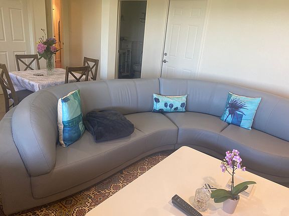This apartment has fabulous view directly out over the Bay to the Golden Gate Bridge and the beautiful garden in front. The apt has two bedrooms, a large living room, one bathroom and a fully equiped kitchen. Parking for two cars is available. on the driveway after entering through gates from the road. The area is very peaceful and safe and a gate from the garden opens directly onto a large park with hiking trails and amazing views. The kitchen has all appliances including a microwave and dishwasher, laundry is done in the kitchen area with a new washer with dryer. The living room is large with plenty of space for a sectional sofa and TV and a separate dining area. The kitchen also has room for a small breakfast table. The property is walking distance from Tiburon downtown restaurants and shops; also the ferry which provides a regular service to San Francisco - a 25 minute ride. Driving to San Francisco normally takes 30 - 45 minutes. Polices include: no smoking, no pets and car parking only in the designated driveway location. Noise restrictions are strict. From 10pm to 7am no noise that can be heard outside the apt is allowed. At other times noise needs to be kept down in order to avoid disturbing owners who live on upper floor. We propose a month to month lease with an expectation that the tenants would like to stay for at least one year and probably longer.. The apt is offered unfurnishes although partial furnishings could be possible. Tenants are asked to assist with taking trash cans out to the street weekly and returning them to the garage.