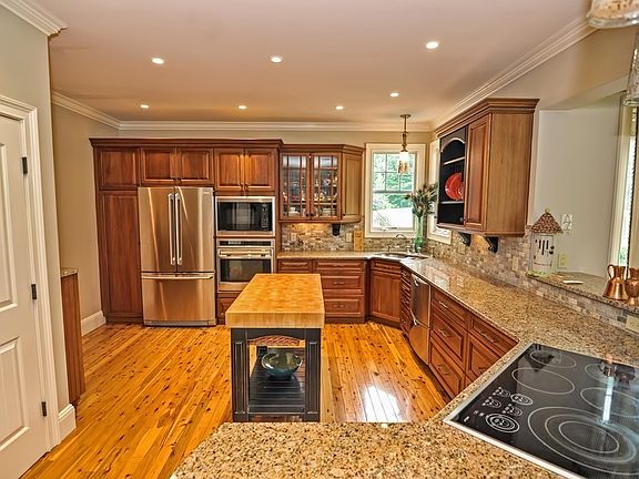 - Kit Dscrp: Window(s) - Picture, Main Level, Dining Area, Flooring - Hardwood, Countertops - Stone/Granite/Solid, Cabinets - Upgraded, Flooring - Stone/Ceramic Tile, Breakfast Bar / Nook, Closet/Cabinets - Custom Built, Fireplace, Recessed Lighting, Peninsula, Lighting - Overhead, Lighting - Pendant
