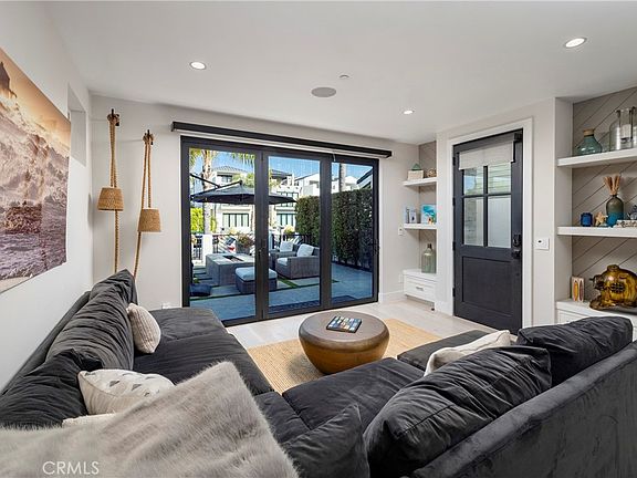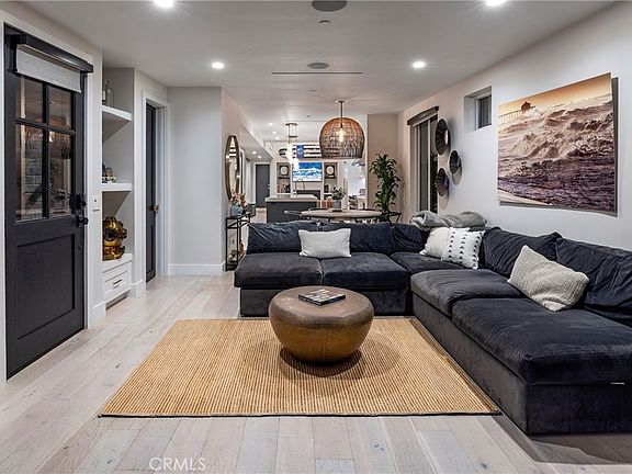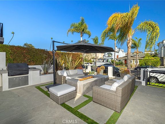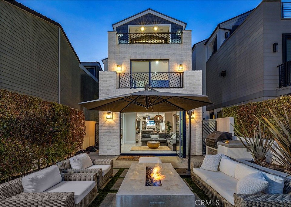 Exquisite contemporary farmhouse located in the highly sought-after numbered streets of Downtown, just steps from Lake Park and a short stroll to the beach, Main Street, the Pier, and Pacific City. This thoughtfully designed home blends modern elegance with timeless character, offering an open-concept layout, clean architectural lines, and an abundance of natural light throughout. The striking exterior is finished with smooth stucco, wood siding, and natural cedar accents, creating a warm yet sophisticated curb appeal. Inside, the first-floor great room features soaring two-story ceilings and a massive gourmet island kitchen that seamlessly connects to the living and dining areas—ideal for both everyday living and entertaining. This home offers three spacious bedrooms and three and a half baths, including a luxurious third-floor primary suite with its own sundeck, a large soaking tub, and peek-a-boo views of the Pacific Ocean. The second level includes a versatile loft or office space, along with a convenient inside laundry room and two bedrooms equipped with en-suite bathrooms. High-end finishes and upgrades are found throughout, including central heating and air, a tankless water heater, modern design fencing, a concrete patio with a built-in firepit, designer metal gates, recessed lighting, and elegant Restoration Hardware chandeliers and pendants. The European-inspired kitchen features modern wood-grain cabinetry with soft-close hardware, marble countertops, and premium appliances including a JennAir 48-inch range, a 48-inch custom panel refrigerator, a Thermador dishwasher, a drawer-style microwave, and an under-counter wine cooler. Tri-fold doors in the living area open wide to create a seamless indoor/outdoor living experience, perfect for enjoying Southern California’s coastal lifestyle. The spacious front patio is professionally landscaped and ideal for relaxing or hosting guests. This home combines luxurious design, high-end amenities, and an unbeatable location to offer a truly one-of-a-kind coastal living experience.