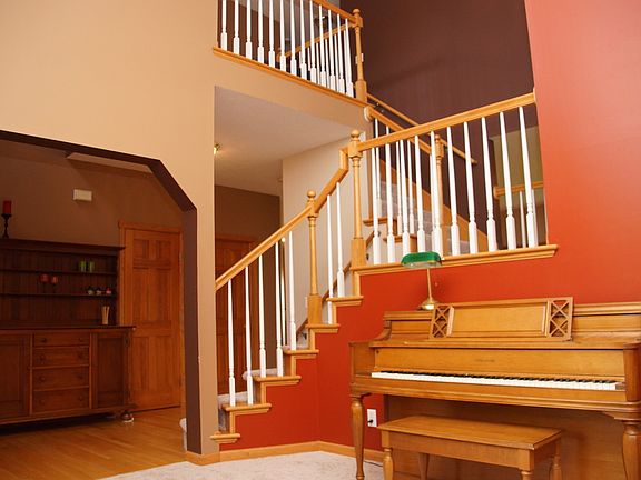Wonderfully well kept 2-story home with only second owner located in a quiet secluded neighborhood in Forest Lake with easy access to I35. 3 bedrooms on upper level with walk-through master bath with whirlpool tub, loft area overlooking entry with open stairwell with railing. Main level features living room off entry, family room with gas fireplace, entertaining kitchen/dining area with breakfast bar and breathtaking views of wildlife and sunsets from dining table and cedar deck. Solid oak flooring, custom raised panel cabinetry and millwork, central air, furnace humidifier, main floor laundry room and much more. 24x24 garage with concrete driveway, garage door opener and nicely landscape yard. Your full walkout basement is ready for your finishing touches!