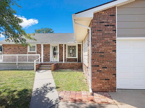 Fantastic Lyons home on a quiet street with FOUR bedrooms! See this truly show stopping home with a wrap around porch, RENOVATED kitchen and a private back yard!!! As you pull up to this home sitting center of a quiet winding street with an eye catching front yard and gorgeous brick exterior that welcome you to wrap around porch to enjoy the peace of the neighborhood. Through the front door the updated flooring runs through the main area of the home showcasing the massive fireplace and open concept. Open to the living room is the large dining area and renovated kitchen. GRANITE countertops, updated cabinets and a breakfast bar make this kitchen ideal for entertaining guests, hosting family gatherings or great game days without missing out on the fun!!! Down the hall you will find a nice sized bedroom and the primary bedroom with a HUGE walk in closet and access to the updated hall bathroom! Down the stairs you will find a large living room, an unfinished storage room, an updated bathroom with the laundry and two MASSIVE bedrooms! Bedrooms and bathrooms on both floors and great updates throughout this home truly has it all!!! Out the back door the covered patio space and fenced in backyard facing the west invite you to enjoy beautiful Kansas sunsets and cozy evenings outdoors! Open floor plan, renovated kitchen and bathrooms, four bedrooms, two bathrooms, an attached two car garage, covered patio, wrap around porch and all brick on a quiet street, this home is a must see!!!