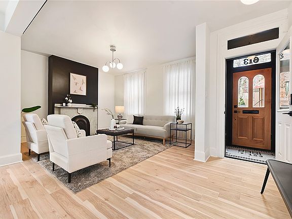 Absolutely stunning Deutschtown row house filled with historic charm and details throughout! As you arrive, the all-brick exterior with black accents and custom front door immediately steal your attention. Inside, you are greeted by a tile entry honoring the year the home was built. A jaw dropping main floor that’s open and bright with soaring ceilings and gorgeous floors await you as you continue inside. The spacious living room features a fireplace with marble mantel and tile hearth. The kitchen is accentuated with a stunning, exposed brick wall and black frame windows. It includes a large island w/ butcher block countertops, a Smeg refrigerator and stone backsplash. Our favorite feature is the large pantry with reclaimed doors. The second floor includes 2 spacious bedrooms and an updated full bath with custom tile surround including a beautiful niche. The basement offers additional finished space w/wet bar and gas stove. It leads you out to a whimsical courtyard w/ a seating area.