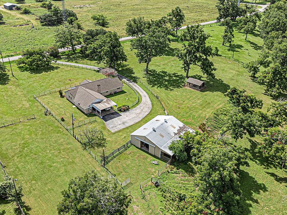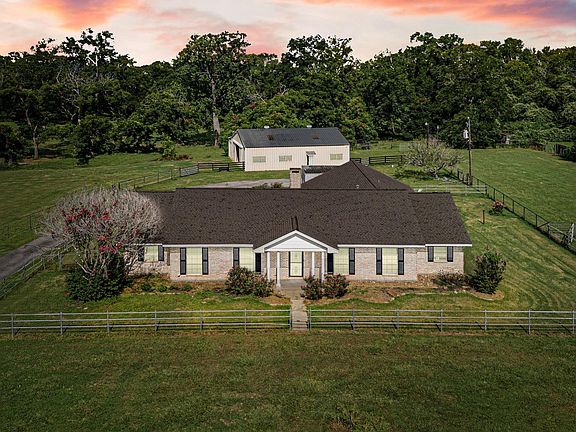 Quiet, low traffic location, appx. 6.6736 acres. Beautiful trees and pastures. Suitable for horses and/or cattle. Brick home/large chicken coup/ Appx. 2,450 SF Barn/3 stalls/tack room. 33' x 24' covered parking. Lighted arena (needs grass stripped and reworked a bit). Perfect for FFA/chickens/horses/cattle/goats, etc. Property is in Zone AE "100 year floodplain", Flood insurance is transferable. Property had appx. 6" water in the home during Harvey. Home is in great shape and is move in ready. Lots of room for kids to explore the country setting and for the family to get away from all the crowding of urban living. Enjoy nature and a peaceful setting.