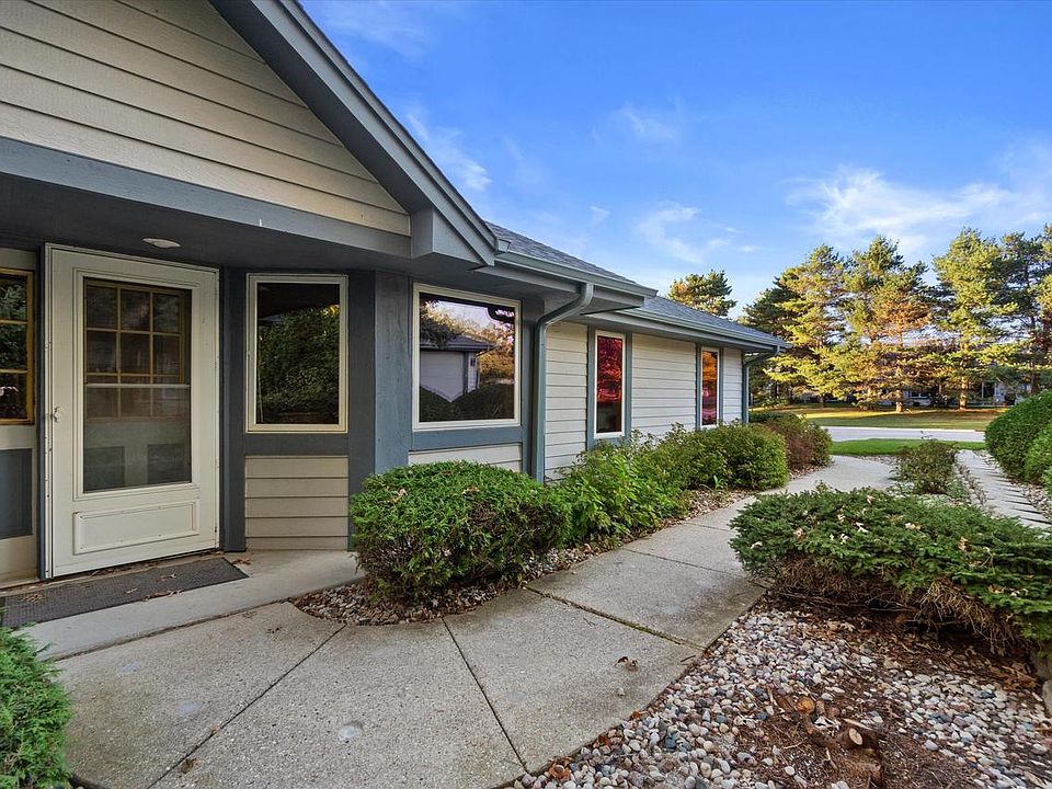 Enjoy the privacy & 'single family feel' in this end unit, open concept ranch condo w/over 2,500 sq ft of living space! Unique wooded & pond views from inside and out + Phantom Lake access via the HOA area. Main floor master suite w/pond view, walk in closet, jetted tub w/separate shower & double sinks. Living room w/vaulted ceilings, wood laminate floors, patio door to a covered porch & french doors to a main floor flex space that would be a great music, reading or craft room or home office. Kitchen w/vaulted ceilings, eat in dinette area & generous cabinet storage & counter space + main floor laundry. Lower level has a full walkout patio door along w/bedroom, full bath, family room area & a lot of basement storage area w/closet space. Two car attached garage + private driveway.