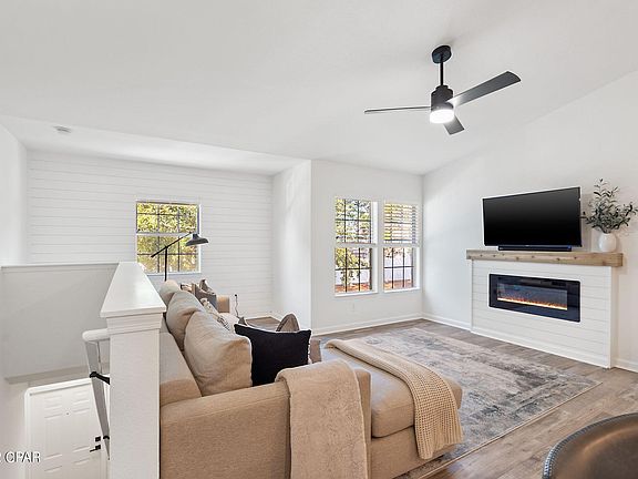 The most gorgeous unit in Nautilus Cove is ready for its new owners. Talk about a prime location. Close to everything that makes Panama City Beach living the best! Updated throughout! The minute you walk upstairs you will feel right at home. Enjoy a freshly painted condo with vaulted ceilings and a lovely living and dining area. The shiplap fireplace sets off the tone. The barn doors are not only gorgeous but a great feature for easy access to the large pantry. The kitchen has plenty of countertop space and laundry is easily accessible. This condo offers a split floor plan design. The master bedroom has a private bathroom, 2 closets and vaulted ceilings. On the opposite end you will find two additional bedrooms and a hall bathroom.