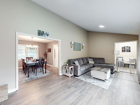Side-entry garageNewer lvp flooringRefinished countertopsVaulted ceilingStylish backsplashUpdated hardware and appliancesCovered porch