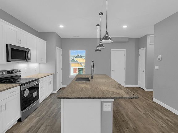 From the front porch space, enter the foyer to a private office, hobby room or playroom (or non conforming bedroom) Continue up to the second-floor living area and your gourmet kitchen, complete with stainless steel appliances, granite counters, a gorgeous island with ample seating for entertaining or casual meals, a pantry, and a storage closet. The kitchen is open to a beautiful large living space with a balcony for morning coffee. The full dining area is perfect for your choice of a banquette or full dining table. For convenience, there is a powder room as well. Come up to the third level into two completely private suits, both with private full baths including double quartz vanities, spacious walk-in closets, and laundry conveniently located where you need it most. There is nothing left to want! Comes with all appliances, even fridge, washer and dryer. Also comes with all new window blinds. Interior finish colors differ from photos.