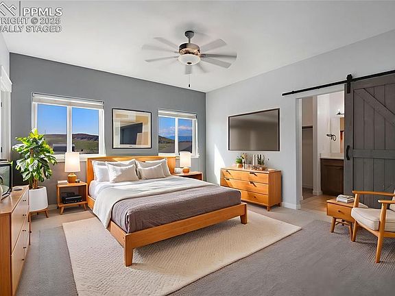 This upgraded two-story home in the Four Mile Ranch community offers a quiet, peaceful setting with no HOA and is just minutes from town. The main level features quartz countertops, wood floors, and stainless steel appliances, while the finished basement includes a large recreation room, an additional bedroom, and a full bathroom. Upstairs, the spacious primary suite boasts a walk-in closet and an ensuite bathroom with dual sinks. Two additional bedrooms share a full bathroom with dual sinks on the upper level. Enjoy beautiful mountain views throughout the home, plus direct access to a walking trail and open space behind the property. The large two-car garage provides ample storage, and the fully fenced backyard is low-maintenance with just one small area to mow. Welcome home!