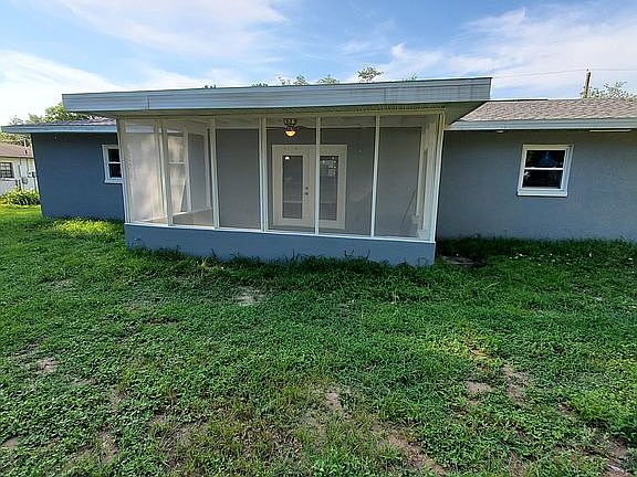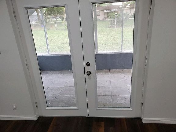 You will find you're long awaited and sought after Florida dream home here. **NO HOA**All your new home awaits is your personal decor. Non-subdivison home situated on a third of an acre with no front neighbors. 3 bedrooms, 2 baths, 2 two car garage. Completely Remodeled! Fresh stucco and painted exterior. Glass front door with side light. The entire home is brand new water resistant Luxury vinyl planks except bathrooms. Remodeled kitchen with 42" white cabinets (soft closure) with crown moulding to ceiling, new stainless steel appliances, exterior vented exhaust fan, marble tile backsplash, granite countertops, nickel hardware, counter top buffet with pendant lighting, double bowl undercount kitchen sink. Formal dining room off of kitchen and living room has glass French doors out to screened patio. Recessed lighting in living room and kitchen. Spacious secondary bedrooms. The secondary bathroom offers an oak vanity with tub/shower combo. The master bathroom has dual sinks, decorative mirrors and a walk in shower with seamless glass doors. New ceiling fans in bedrooms along with closet organizers. New roof, ac, and energy efficient windows. Oversized screened patio with French Doors. Backyard is perfect for a swimming pool. Exterior coach lights.