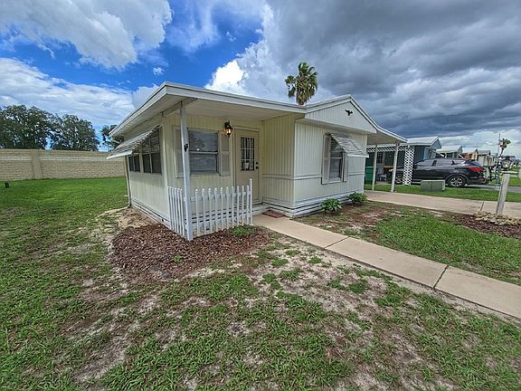 Welcome to this charming and cozy 2-bedroom, 1-bath single-wide mobile home located in the friendly and professionally managed Parkwood Communities! Perfectly sized for easy living, this well-kept home offers comfort, functionality, and a great location. Enjoy a beautiful kitchen with a large counter-ideal for meal prep or entertaining. The home also includes a dedicated storage/tool room to keep your belongings organized and out of sight. Outside, you'll appreciate the spacious driveway with plenty of room for parking. Whether you're hosting visitors or just enjoying a quiet evening at home, this property has everything you need. Best of all, you're just minutes from The Villages' Brownwood Paddock Square, where you can enjoy free nightly entertainment, restaurants, shopping, and more! Whether you're looking for a full-time residence or a seasonal escape, this lovely home offers a relaxed, low-maintenance lifestyle in a fantastic location. Come see it for yourself!