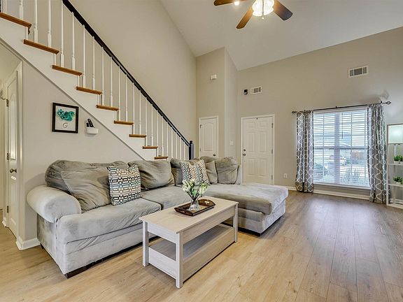 VA LOAN ASSUMPTION AVAILABLE. NEW ARCHITECTURAL ROOF IN JANUARY 2024. NEW LVP HARDWOOD FLOORS AND FRESH PAINT IN GREAT ROOM, KITCHEN AND DINING. Spacious two-story great room. Eat-in kitchen with plenty of counter/cabinet space, tile backsplash, pantry, white cabinets and all appliances including refrigerator. Owner suite on main with NEW CARPET features private bath with soaking tub, separate shower, double sinks, tile floors and large walk-in closet. Half bath and laundry room with tile also on main level. Three guest bedrooms, all of which are a good size and full bath upstairs. Walk in attic offers plenty of storage! Two car garage with separate outside entrance. Rocking chair front porch. Privacy fenced yard with patio. This home is located in a popular pool community and only minutes to top rated schools!