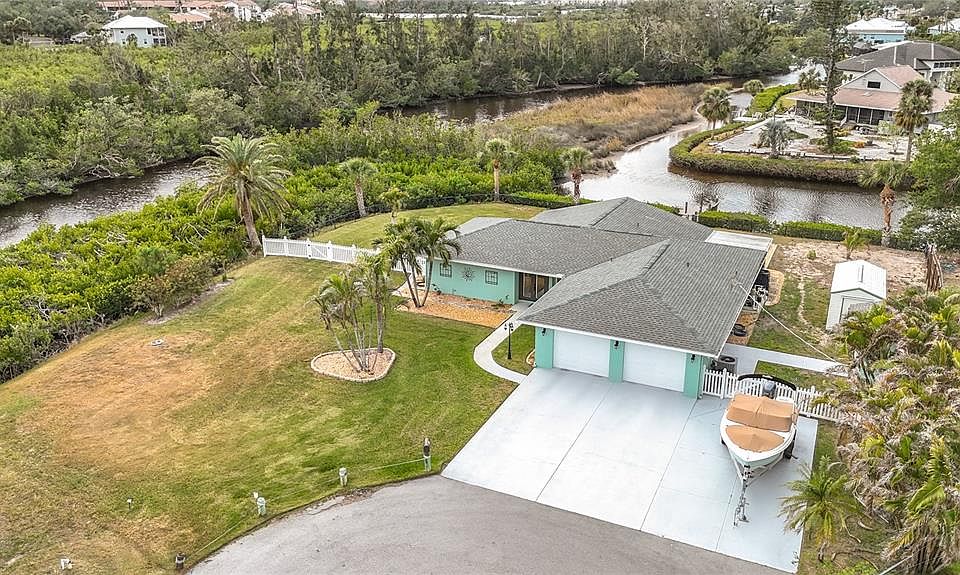 Under Contract. Accepting Back Up Offers. This is the one you have been waiting for! Very private, large fenced property at the tip of a peninsula. This is one that does not come along very often. Two lot edges are adjacent to water with access to the Gulf. It is the epitome of the Florida lifestyle. Grill out pool side with friends and family or head to the beach, enjoying that famous Florida sunshine. With extra time on your hands, launch your kayaks off your own private dock and decide to go up or down Curry Creek. The further inland you travel, the more the mangroves turn to ferns and the trees produce a canopy, shielding you from the sun. Go down and within minutes, you end up in Roberts Bay, the Intracoastal Waterway, Snake Island, out the Venice Jetty and into the Gulf. Feel like a little more speed? Hook up the trailer and tow your boat just two miles away to the Marina Park boat ramp and head offshore for some fishing. Not in the mood for the water life that day? Hop on your bike and cruise the Legacy Trail connected from Shamrock Park in South Venice all the way to downtown Sarasota. Enjoy an evening out shopping and dining with an abundance of local boutiques and restaurants to choose from off Tamiami Trail, Venice Island with historic downtown Venice or Sharky's on the Pier. Everything is set up in this turn key home with furnishings optional. Both bedrooms have attached bathrooms. This updated home has a new roof in 2018. Hurricane impact windows and pool resurfaced in 2020. Garage floor epoxy and brand new whole home reverse osmosis system in the well house installed in 2023. Brand new deep well drilled in November 2024. This home and property truly has it all. The word boredom will never be spoken.