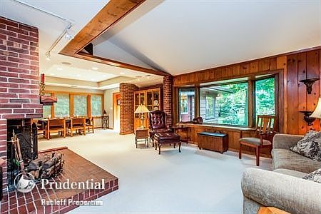 The Living (vaulted ceiling), Dinning room (tray ceiling) surround a large centrally located brick fire place. Modern Kitchen with Cherry cabinets and (Amana, Dacor & Kitchenaid) appliances. An upstairs Master bedroom with bath and walk in closet. 2 year old Architectural shingles, Gutters with leaf guard and down spouts Plumbing converted to all copper supplies. Electrical system has been completely replaced and upgraded to 200 Amp service. Forced air furnace and central air replaced about 6 years ago.