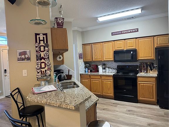 Adorable fully updated and furnished 1 level 3/2 condo with sports theme, (formerly the Lettermen's Lounge), on the bus route. Open floor plan with breakfast bar, luxury vinyl plank flooring throughout, granite in kitchen and all baths and black appliances. It is less than a block from bus stop. 2 smart TVs and walk-in closets in all three bedrooms. Primary bedroom has a en-suite bath and guest bedrooms have jack-n-jill set up, each with a walk-in closet. Small private back patio with outdoor dining set and grill.