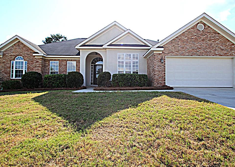 As you enter this home you will notice the 10' ceilings in the foyer, family room and the formal dining room and crown molding in the great room, formal dining room and the kitchen. Hardwood floors flow through out the home with tile in the kitchen and bathrooms. The kitchen features granite counter tops, SS appliances and burnt old bronze fixtures. The breakfast area has a bay window that overlooks the backyard. The covered patio is the perfect place to enjoy the outdoors. This maintenance free home has brick on 4 sides.