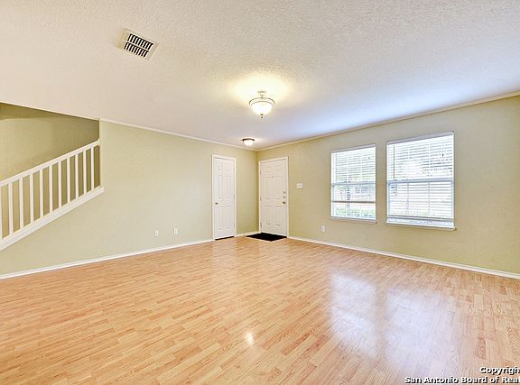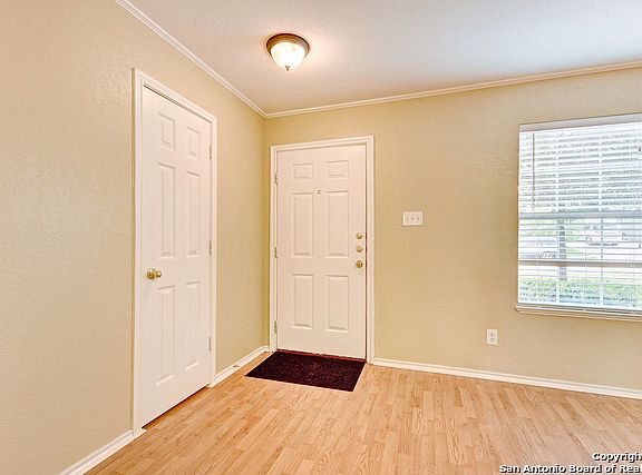 EXQUISITE HOME W/ HUGE PRIVATE BACKYARD OVERLOOKING GREENBELT!!! This is truly a one-of-a-kind, magazine-quality home. $20,000 in all the right upgrades make this the perfect home for entertaining & enjoying the peace & quiet of nature. Wood floors throughout, ceramic tile in kitchen & dining rm, mosaic guest bath, crown mouldings, designer paints, window trims & coverings, updated lighting & more! Lvng Rm wired for surround sound. Open floor plan with plenty of natural light. Separate large master bedroom has remote control light/fan & huge walk-in closet. Large master bath has garden tub w/ tile backsplash, double vanity & built-in shelves. Spacious sp. bedrooms have walk-in closets. French door in dining room leads to 10x12 west-facing covered patio- great for watching the sunset over greenbelt. Mature trees provide privacy & shade- perfect for hammock or laying out! Large private yard has plenty of room for play-set, active pets & more. East facing house stays cool in hot Texas summers. Next to miles of quiet country road for daily walks. Minutes from Randolph AFB, Steele High & shopping. Close to FT Sam & BAMC. This home won't last at this price! Can't find a more beautiful home & yard for a better deal. Military family sad to leave, but duty calls! Visit us for more on REALTOR.com MLS# 720249