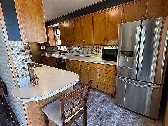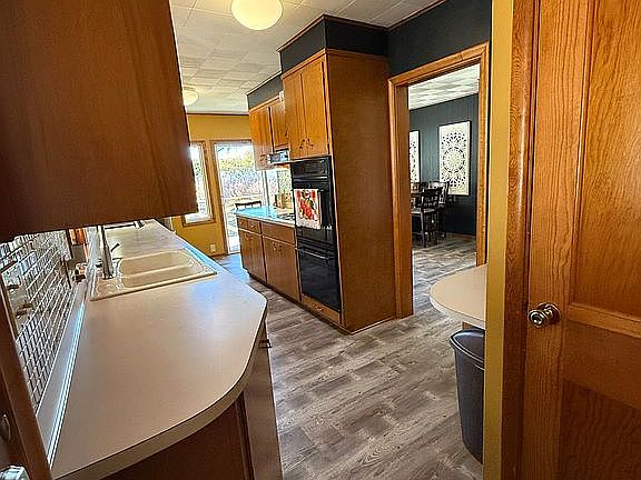 This charming 3 bedroom, 2.5 bath bungalow is nestled on a large lot just a few blocks from Westside Park, Sacred Heart Hospital, Mount Marty University, Lincoln Elementary School, Yankton High School, and the Meridian District. Note newer features: new electrical panel and GFCI & AFCI 3 prong receptacles in 2025, new waterproof laminate plank flooring and new carpet 2024, a new patio door with 2 new windows on each side and deck off of the dining room and galley kitchen and 3 new basement windows in 2023, radon mitigated in 2021, new egress in 2019, new roof in 2018, new furnace and air conditioner in 2017. Above grade you will find 1797 sq. ft. of living space. The large family room adorns floor to ceiling bookshelves flanking each side of the wood burning fireplace, French doors that open up to the cozy breezeway off of the family room and kitchen, 2 main floor bedrooms include cedar built-in closets, 1 bath, a galley kitchen, eat in dining room with a built-in curio cabinet. The upper level consists of a bright and cozy sitting room with hardwood flooring and built-in drawers, leading to the bedroom and half bath with new carpet. Let's not leave out all the built-ins including a desk, a dresser, 2 twin beds with built-in shelving in the headboards and plenty of closet space. Below grade you will find 712 sq. ft. of studio space with a wet bar and cabinet, a newer egress window as well as 3 new basement windows, a root cellar and a bath with shower. The main level includes a relaxing breezeway where you can enjoy a book or eat a cozy dinner together. Walk out the back door of the breezeway to find a private cement patio and large backyard where you can sit by the built-in rock fireplace and listen to nature around you.