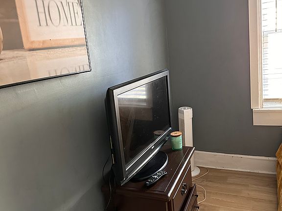 Fully furnished with bed, dresser, and TV