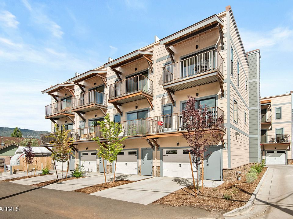 Experience Flagstaff living at its finest, in this rare luxury home located in an exclusive 8-residence community in the heart of Downtown Flagstaff! Short-term rentals (STR's)allowed, this fully furnished property is a true turn-key vacation rental or investment opportunity. Take in stunning San Francisco Peaks views from five private covered patios. Just minutes from Arizona Snowbowl, enjoy skiing, hiking, and year-round outdoor recreation. Featuring 3 en-suite bedrooms, zoned central air, and an attached EV-ready garage with storage, this home is ideal as a Flagstaff primary residence, secondary mountain retreat, or income-producing rental property.