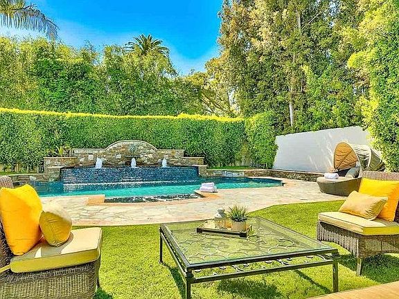 FULLY FURNISHED. SHORT-TERM, LONG-TERM, TURN-KEY. Renter responsible for electric, gas, and cleaning. Available short term as well. Rental company has many properties available short and long term, filming, tv, commercial opportunities. This exquisite, gated, Tudor style mansion with circular driveway is located in the Beverly Hills Golden Triangle on a large private, flat lot. comprising of 4 upstairs bedrooms with ensuite, as well as oversized guest house, this All four bedrooms are upstairs along with four bathrooms for each room. The expansive living room leads to an open family room. The family room features high ceilings and moldings throughout, a large stone fireplace, piano, and a granite wet bar. French doors lead from the family room into the yard with heated pool, covered patio, and detached guesthouse/in-law quarters. Fully furnished 1 Bedroom, Dining, kitchen guest house as well. Property available under a year. Renter responsible for electric, gas, and cleaning. Available short term as well. Rental company has many properties available short and long term, filming, tv, commercial opportunities.