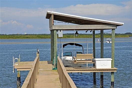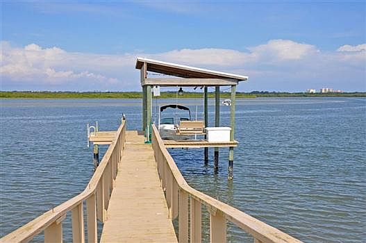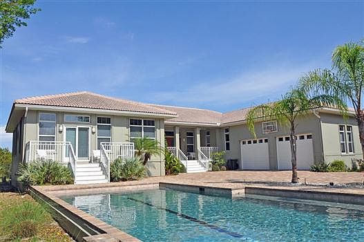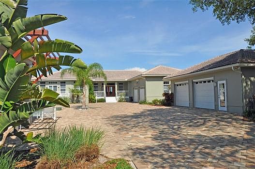 Intracoastal 4 bdrm, 2.5 bath home on 1 acre gated compound. Custom-built in 2000 & further detailed in 2005 & later, including the installation of solid Oak floors, expansive impact glass sliding doors opening to expansive screen enclosed outdoor area, fabulous 2 lane lap pool & gated entry. Extensive garage space with oversized attached 2 car garage & oversized detached 2 car air conditioned garage; this additional space is ideal for a car collector, home office or conversion to separate in-law quarters. Intracoastal deepwater dock with boat house & lift. Spacious kitchen has lots of windows & granite counters + separate butlers pantry area. Master suite has dual custom closets, glass block bath & great Intracoastal views with sliders to screened deck. Three of the four bdrms open to covered or screened porches. The fourth bdrm has custom-built Maple roll-back library wall to reveal queen size Murphy bed. Office has closet & could be a 5th bdrm if needed. Volume ceilings throughout. All windows are double-paned. There are storm shutters for all windows & doors. All buildings are masonry construction with the exception of small portion section of south guest bdrm that was added in 2005. The main home living area is on one level & is nicely elevated to capture Intracoastal views & breezes. Fully fenced & landscaped yard with lawns both front & rear. Citrus trees, including orange, lemon & lime. Salt water pool. Well, pump & sprinkler system for yard care. Washer/dryer new 2013, dishwasher 2015. This is a one-of-a-kind property. See to appreciate!