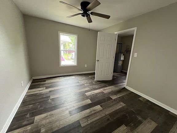 This home features rich dark wood flooring that contrasts perfectly with light-colored walls, creating a warm and cozy space. Natural light pours in, highlighting its inviting atmosphere. The arched doorway adds architectural character, seamlessly leading into an adjoining room equipped with a sleek white door and a mounted air conditioning unit for year-round comfort. Whether transformed into a stylish home or investment property this two bedroom one bathroom home sits on two lots. See agent remarks