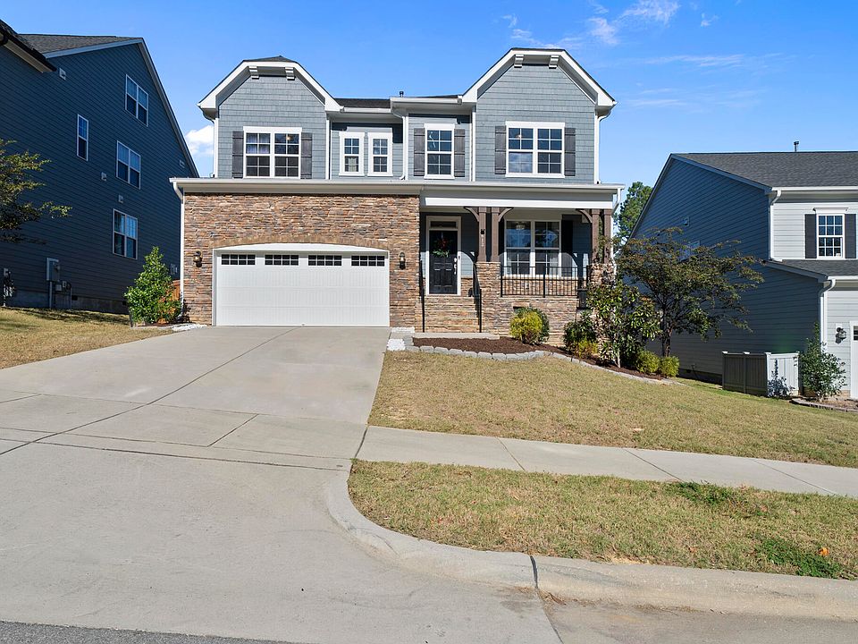 Celebrating any season in a home that truly welcomes you in. This beautifully designed and well-maintained 3,575 sq. ft. GALVANI floor plan in Oak Pointe blends timeless style with modern comfort. With 5 bedrooms, 4 full baths, and a spacious media/game room, it's designed to adapt beautifully to everyday living and special occasions alike. The main floor offers a guest room with a full bath, a private office with French doors, a formal dining room, and a large kitchen nook - ideal for entertaining. The gourmet kitchen is the centerpiece of the home, featuring a quartz island, gas cooktop, soft-close cabinetry, a coffee/snack bar, walk-in pantry and ample storage. Upstairs, the primary suite includes a comfortable sitting area and two walk-in closets, along with three additional bedrooms (one with an ensuite bath), a loft, and a spacious media room. Engineered hardwood floors, smart-home features, and thoughtful design throughout make this home both elegant and functional. Step outside to an expansive screened porch and deck that extend your living space outdoors, overlooking a fenced backyard - perfect for morning coffee or weekend gatherings. And this home isn't just about what's inside - the location is unbeatable. Nestled at the intersection of Highways 55 and 64 with quick access to 540, Oak Pointe offers effortless connectivity while bordering West Cary. You're minutes from Beaver Creek Commons, ALDI, Costco, and a host of shops and restaurants that make everyday living remarkably convenient. This move-in ready home comes complete with professionally sanitized carpets, kitchen refrigerator, washer/dryer, living room and media room TVs, and a piano. An assumable 2.25% VA loan is available for qualified veterans. A perfect place to make new memories - and be home for the holidays.