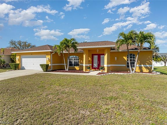 Welcome to your cheerful oasis! This vibrant three-bedroom home boasts a full den, ideal for work or relaxation. Enjoy two stylish bathrooms, with a master bath featuring a soaking tub and separate shower, recently remodeled to perfection. Revel in the sleek tile and wood flooring throughout, complemented by granite countertops and a new roof. Privacy is paramount with a fenced yard, while outdoor living beckons with an inground pool, lanai, and sun-soaked paver area. City assessments are settled. Just an 18-minute drive to the airport, this centrally located gem offers easy access to eateries, downtown events, beaches, fishing, and hiking trails. Boating enthusiasts will delight in nearby marinas and ramps. Experience the best of Cape Coral living here!