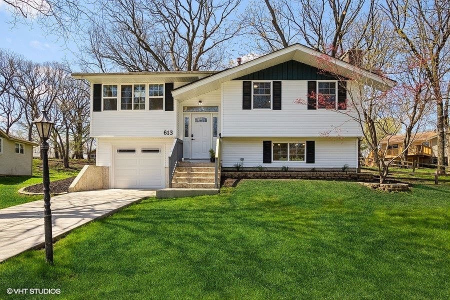 Stunning, remodeled bright open-floor concept 3 bedroom home located on a quiet tree-lined street in Schaumburg with award winning District 54, 211 schools. New Custom leaded glass door and foyer welcome all who enter this fully updated Estate. Gleaming textured laminate vinyl floors through-out (new in 2022), new insulated windows and new drywall, new insulation, and newly painted walls and ceilings (2022) through-out the home provide passionate areas to relax and entertain. New 2022 Stainless steel Samsung appliances, Granite countertops, custom "soft-close" cabinets and large oversized Granite topped eat-in island make this homes Kitchen a Chefs' delight. This Open kitchen boasts a designer farm-style kitchen sink, subway tile and overlooks spacious living room to create an awesome area to cook, relax and entertain. Large family room in the walk-out basement has custom Marble-hearth ordained fireplace for cozy fires and S'mores year around. Sliding glass door in lower level leads to awesome private yard. The Sliding glass door off the kitchen dining area leads to large new private deck (2022) that overlooks tranquil areas. Bright, open living room and adjacent dining area offers an awesome space to enjoy. Bright, English-style basement includes Recreation space with added storage area and includes convenient access to garage and open area. Your Professionally remodeled home is being conveyed as-is and has valuable updates including Quartz in basement and the sinks in the bathrooms, new roof, new siding, new windows 2022, new DW 22, Frig, Stove '22. New furnace and AC, '22. Home has new electric fixtures, new plumbing fixtures, new garage door and opener, deck and 100 amp electric panel all new in 2022 with permits. Located in Schaumburg's highly desired 54/211 School district your new home is near shopping, restaurants, expressways and more. Come tour this awesome new home and start packing.