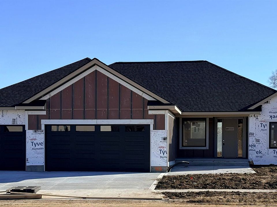 New construction! Stunning new home in Monrovia Estates, set on an amazing large estate lot with huge windows and premium finished and backs to a secluded lush tree line. This 3-bed 2-bath, walk-out ranch offers under 1,900 finished square feet of elegant and open-concept living. The home feature 10-foot ceilings and an expansive floor plan with a waterfalled quartz center island and spacious walk-in pantry. The 3+ car garage is finished - fully insulated, painted and trimmed. Home includes an excavated stoop in basement, which provides endless customization opportunities. The primary suite boats an overside closet, soaking tub, dual sinks and a beautifully tiled walk-in shower. Monrovia Estates is ideally located near the upcoming Tower District, a 120-acre mixed-use development in Papillion, NE. Estimated completion early 2026.