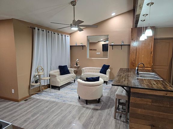 Spacious ranch-style 3 bed, 1 bath home featuring an open concept kitchen and living room. Vinyl flooring runs throughout the main level and bedrooms are carpeted. Clean full bathroom with elegant tilework along the wall of the shower/bath. A large patio area can be found in the back; ideal for outdoor leisure and activities. A convenient shed sits in the back for additional storage. Located on the north side of Pueblo off exit 100, mere minuets away from downtown shops, entertainment, and close to the Parkview Hospital.