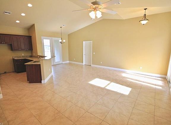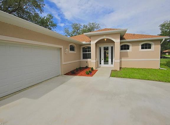BRAND NEW 4 Bedroom 2 Bath 2 car garage home located in one of the most desired areas in Buckingham due to the close access to I-75, golf courses, recreation and shopping. Home features beautiful dark wood kitchen cabinets and granite countertops! Complete kitchen appliance package included! Over-sized tile throughout the living area and soft beige carpet in the bedrooms. Crown molding throughout the entire home. Both bathrooms feature granite countertops and dark wood vanities. The master bath has a large soaking tub and walk-in shower. Spacious laundry room with dark wood cabinets and utility sink. Outstanding curb appeal with side entry garage, beautiful landscaping and extended lanai surrounded by the beautiful mature trees in this gorgeous Buckingham neighborhood.