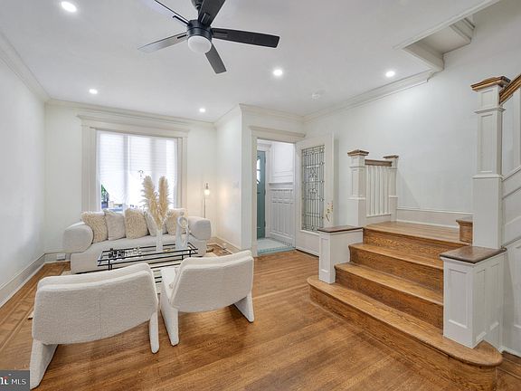 Welcome to this grand Colonial Revival twin in the heart of Cobbs Creek, a now vibrant neighborhood with deep roots dating back to the mid-1600s. Built in 1925 and stunning from every angle, this architecturally classic home offers nearly 3,000 sq ft of thoughtfully redesigned space, maintaining and blending timeless craftsmanship with contemporary upgrades. From the moment you enter, the restored original vestibule greets you with classic tilework, elegant wainscoting, and a beautifully preserved glass-inlay door that speaks to the home’s rich heritage and history. Throughout the home, the original hardwood floors, intricate crown molding, ornate wood trim, original solid-core doors, and the living room’s grand staircase are a nod to the past, while recessed lighting, central air, and ceiling fans provide modern convenience. The expansive living room features a cozy wood-burning fireplace and that signature Philadelphia staircase landing. The formal dining area sits against the backdrop of an open staircase and impressively large, fully reimagined and redesigned kitchen with quartz countertops, center island with seating, ample cabinetry, sleek finishes, and a convenient mudroom that opens to the private rear yard. Upstairs, what was once four bedrooms has been sophisticatedly updated to three, allowing for a spacious primary suite complete with walk-in closet and en-suite bath, and large enough for a sitting area. A charming reminder of the home’s classic layout, the refurbished Jack & Jill bathroom remains between the back two bedrooms with the back staircase accentuating the home’s character, charm, and flow. Downstairs, the fully finished basement feels like its own apartment: a private side entrance, full bathroom, bedroom, wet bar, and open space for entertaining, relaxing, hosting long-term guests, or additional rental income. This is truly a property not to be overlooked. Designed to be “smart home” ready, it is wired with ethernet in every room AND wired for four cameras. All major systems have been replaced. Major upgrades include: brand new 200 amp electric service, new plumbing, new windows, dual-zoned HVAC, attic access via pull-down ladder, and more. This home is just as efficient as it is beautiful! A rare opportunity to own a piece of Philadelphia history tastefully redesigned for today’s modern lifestyle. It’s walking distance to beautiful Cobbs Creek Park, Macho’s Delish Mix, and nearby Septa’s Market-Frankford line and other bus routes! Come experience the warmth, character, and modern comfort of this exceptional Cobbs Creek home.