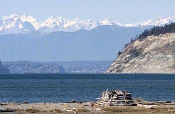 Situated on a double lot, this 3000+ sq ft home enjoys Westside panoramic views of Puget Sound, sunsets, cruise ships and the majestic Olympic Mountains. This well-maintained 3 bdrm, 2.75 bth home features an open floor plan with a main floor Master and 2 living areas with a 2-car garage plus an additional 1-car garage below with a workshop, mature landscaping and community beach access.